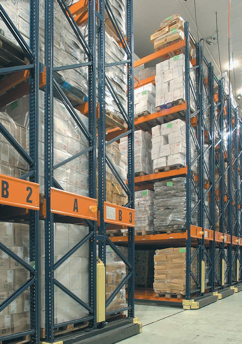 More compact and considerably increased capacity, without giving up direct access to any item in stock. All these racking units are installed over bases, by opening up the corresponding aisle provides direct access to the desired pallet. Ideal for cold chambers, refrigeration and freezing, our mobile racking is also optimal for palletized product storage and warehouses with cantilevers that require storage for sheets, reels and large or irregular-sized products.